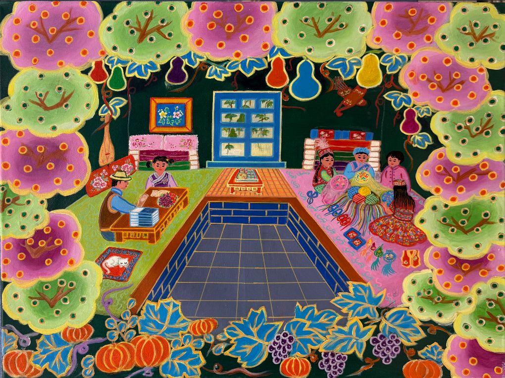 讓我們一同走進(jìn)這些色彩濃烈、質(zhì)樸鮮活的農(nóng)民畫作。每一筆都浸潤著創(chuàng)作者對鄉(xiāng)土生活的深情,每一幅都定格了新疆農(nóng)牧民的喜悅與奮斗足跡。這些作品以最生動的視覺語言,呈現(xiàn)了鄉(xiāng)村振興戰(zhàn)略下新疆大地的豐碩成果與蓬勃生機(jī)。