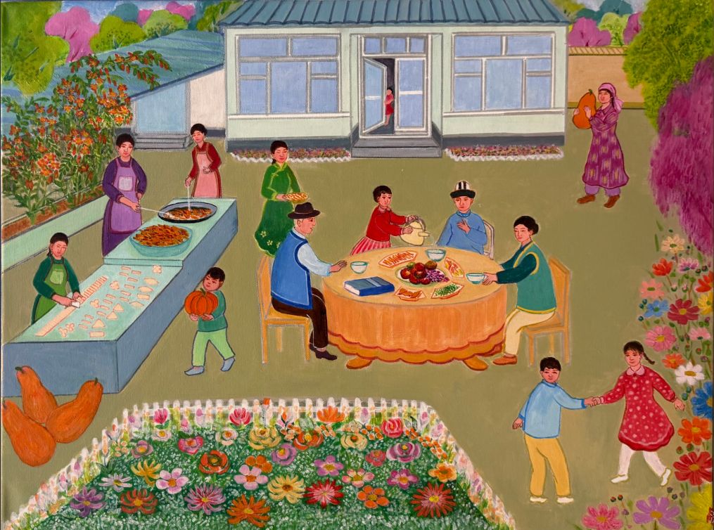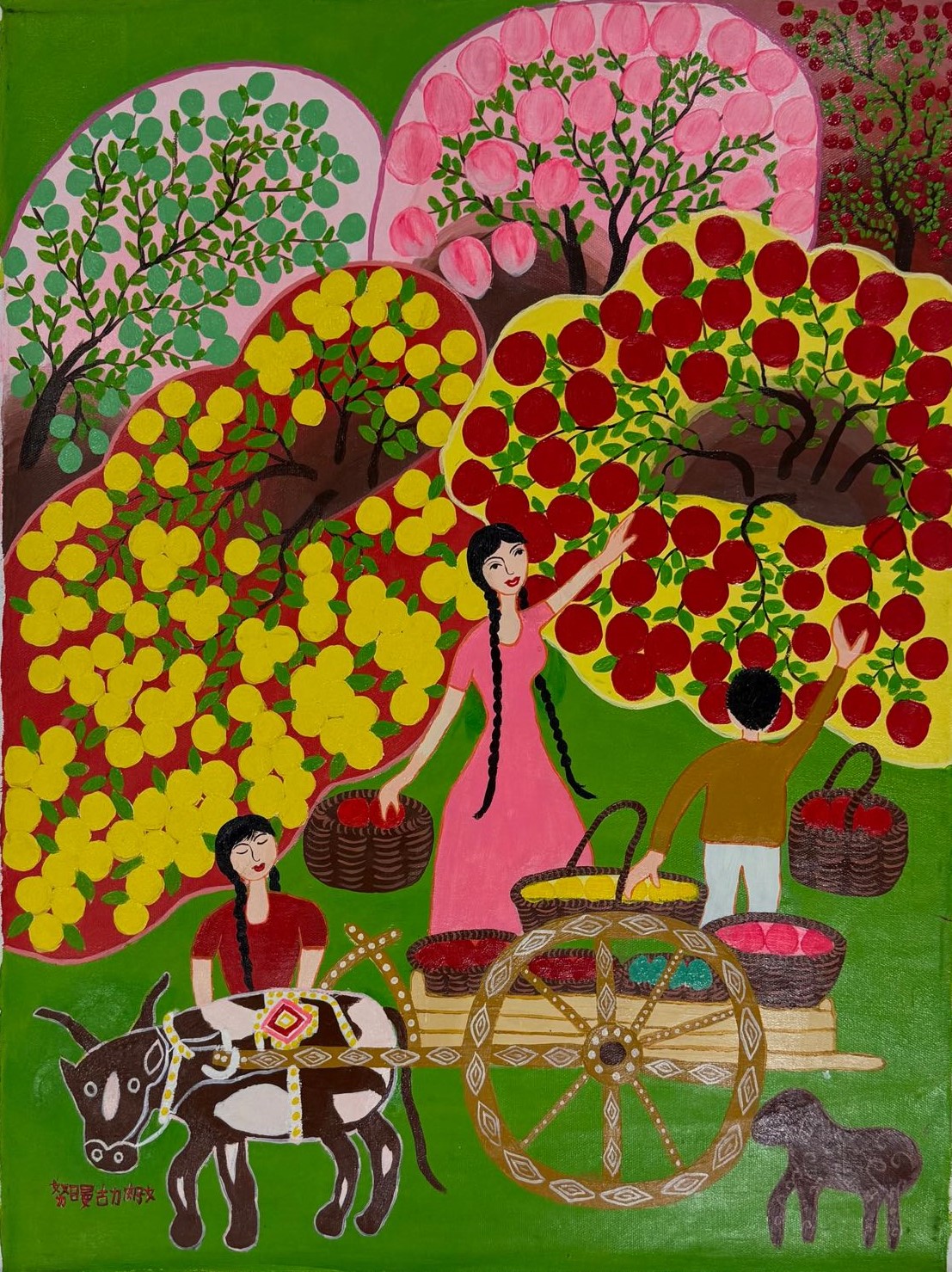 讓我們一同走進(jìn)這些色彩濃烈、質(zhì)樸鮮活的農(nóng)民畫作。每一筆都浸潤著創(chuàng)作者對(duì)鄉(xiāng)土生活的深情,每一幅都定格了新疆農(nóng)牧民的喜悅與奮斗足跡。這些作品以最生動(dòng)的視覺語言,呈現(xiàn)了鄉(xiāng)村振興戰(zhàn)略下新疆大地的豐碩成果與蓬勃生機(jī)。