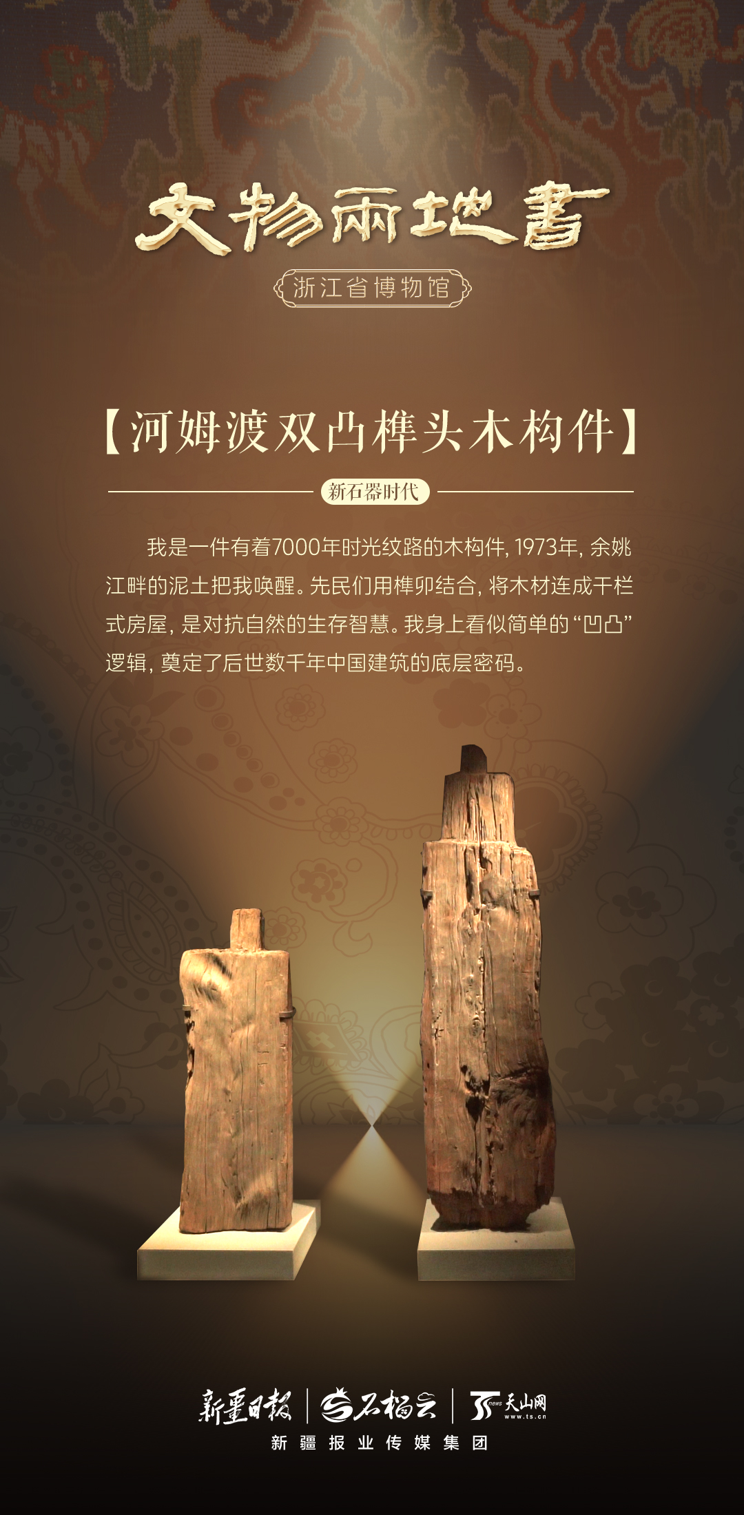 文物兩地書(shū)丨浙江省博物院·河姆渡雙凸榫頭木構(gòu)件