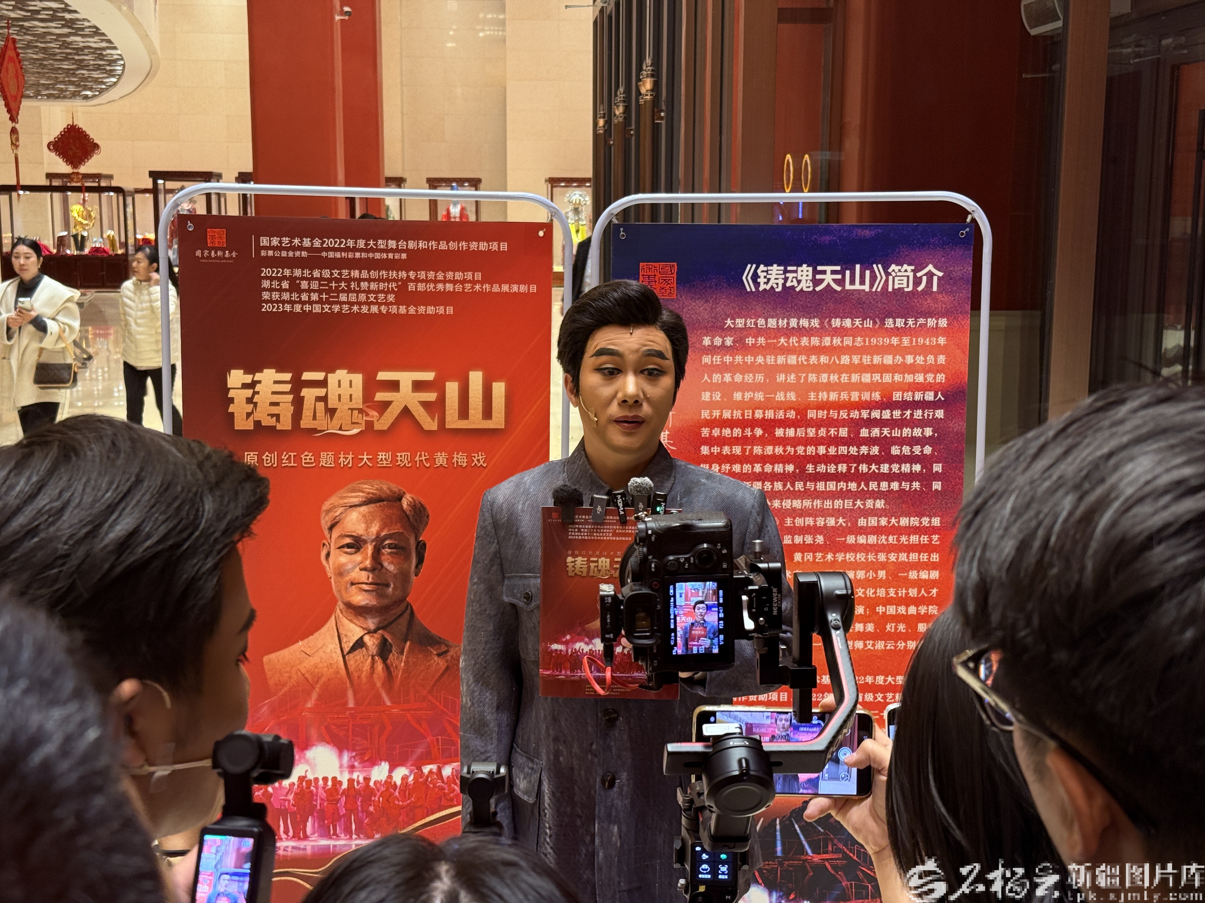 原創(chuàng)紅色題材黃梅戲《鑄魂天山》主演接受記者采訪。天山網(wǎng)-新疆日報記者 王新紅攝