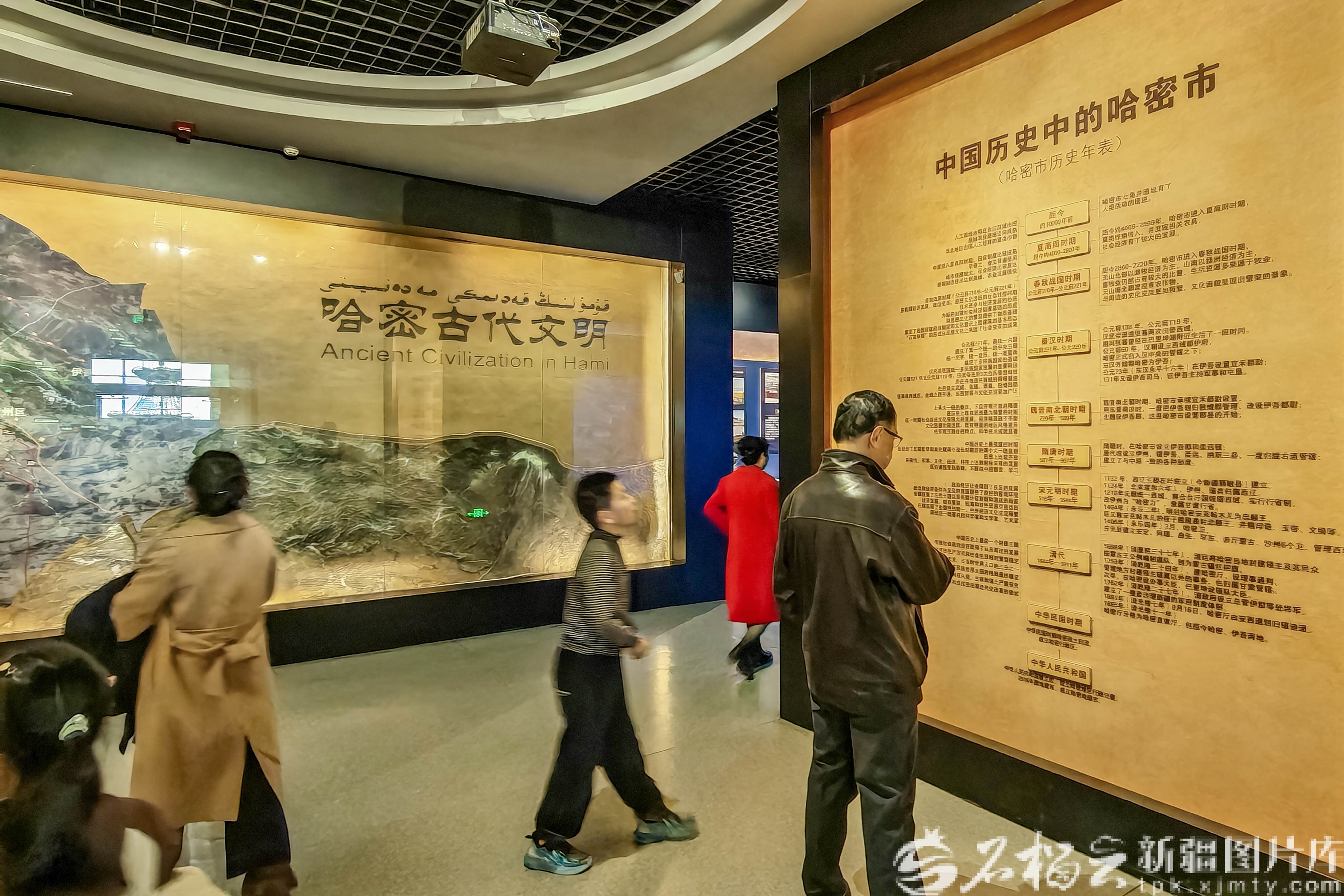 2月18日,游客在哈密市博物館古代文明展廳參觀。