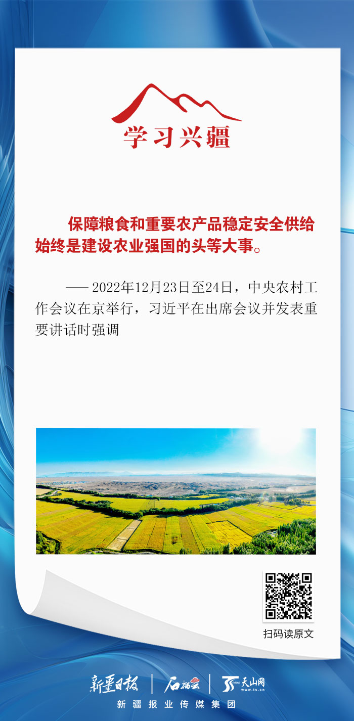 學習興疆丨保障糧食和重要農(nóng)產(chǎn)品穩(wěn)定安全供給始終是建設(shè)農(nóng)業(yè)強國的頭等大事