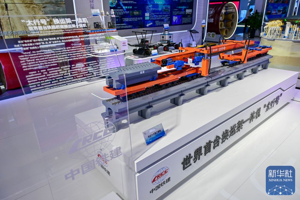 ↑ 這是第八屆中國-亞歐博覽會上中國鐵建展區(qū)展示的“太行號”換運(yùn)架一體機(jī)模型(6月27日攝)。新華社記者 丁磊 攝