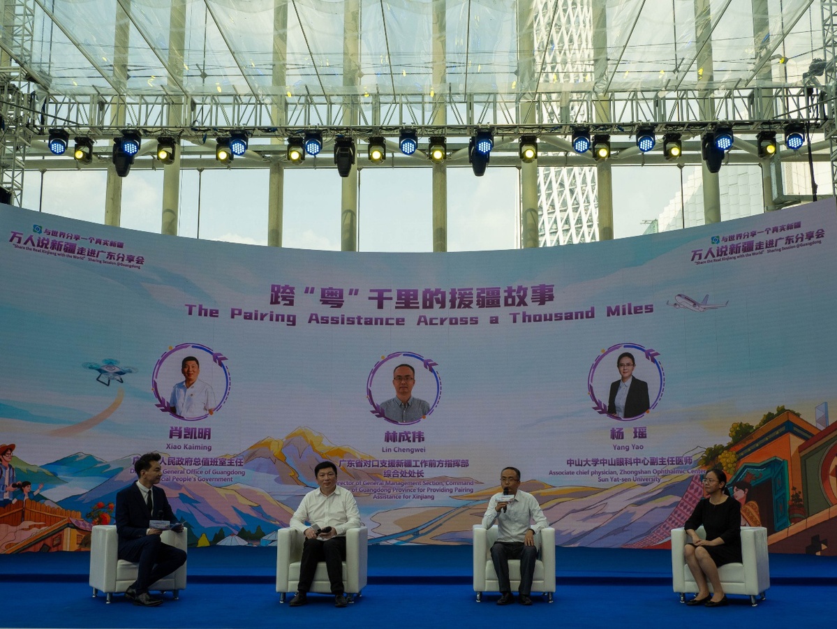 “萬(wàn)人說(shuō)新疆”走進(jìn)廣東分享會(huì)于9月3日在廣州舉行。此次活動(dòng)由新疆維吾爾自治區(qū)黨委網(wǎng)信辦主辦,廣東省委網(wǎng)信辦、廣東省對(duì)口支援新疆工作前方指揮部協(xié)辦,南方新聞網(wǎng)承辦。分享會(huì)從國(guó)內(nèi)知名學(xué)者、外籍專(zhuān)家、海內(nèi)外博主、援疆干部、港澳青年等不同視角,講述有溫度、有情懷、接地氣的新疆故事。