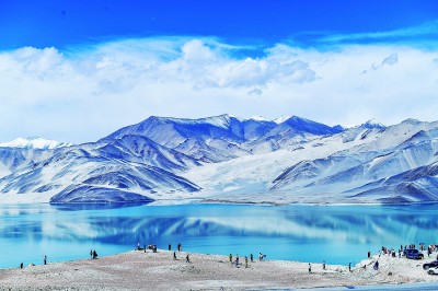 位于新疆克孜勒蘇柯爾克孜自治州阿克陶縣的白沙湖是一處高原冰湖。6月7日,白沙湖景區(qū)內(nèi)藍(lán)天、雪山、白沙、湖水構(gòu)成一幅動人心魄的自然畫卷,吸引游人沉浸其中打卡拍照。韓峻攝/光明圖片