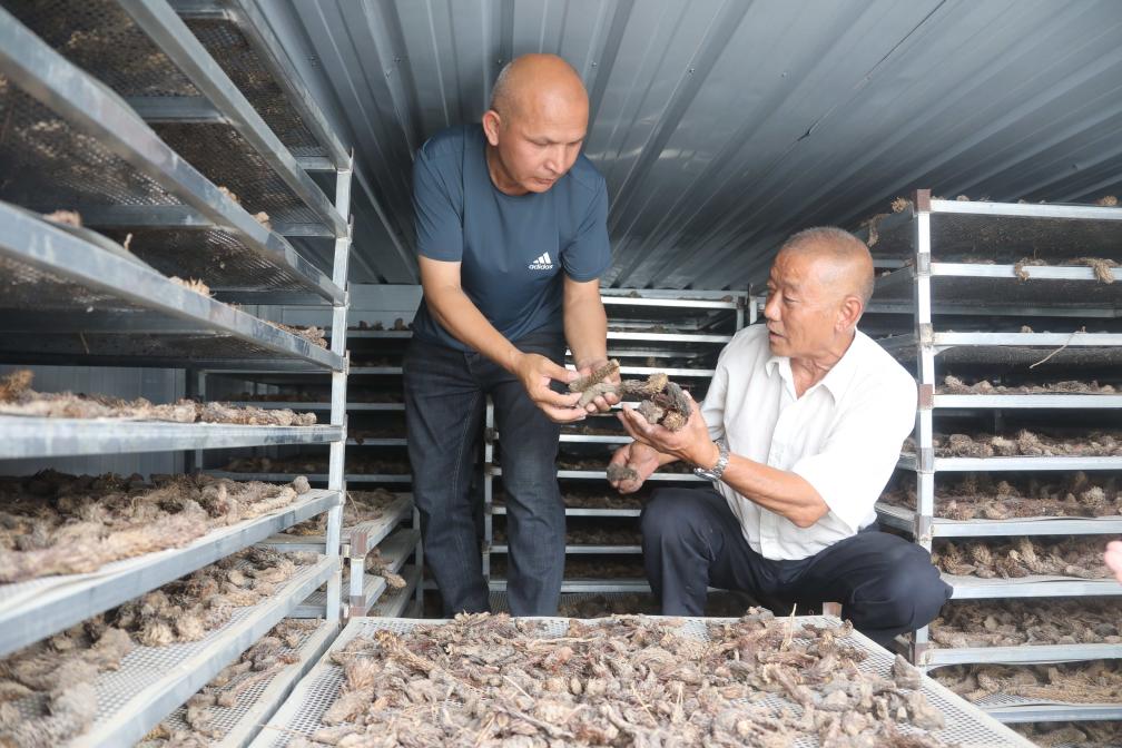 老兵治沙站工作人員在檢視曬干的肉蓯蓉(攝于2025年6月13日)。新華社記者劉詩平 攝