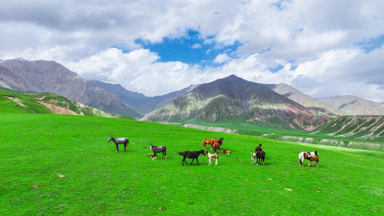 站在海拔3000米的高原牧場極目遠眺,湛藍的天空下,白云如絮,與遠處巍峨的雪山交相輝映。廣袤的草原上,牧草豐美,野花點綴其間,微風拂過,草浪翻滾,送來陣陣清香。成群的駿馬在草地上自由馳騁,牛羊悠閑地漫步覓食,牧民的帳篷星星點點,炊煙裊裊,處處洋溢著濃郁的草原風情。