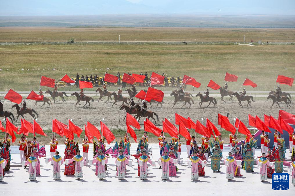 7月19日在新疆昭蘇拍攝的2025新疆伊犁天馬文化旅游節(jié)開幕式“萬馬奔騰”場景(無人機照片)。當日,2025新疆伊犁天馬文化旅游節(jié)在昭蘇縣天馬文化園啟幕,馬術(shù)表演、民族傳統(tǒng)體育賽事與民俗藝術(shù)展演等活動精彩紛呈。新華社發(fā)(張利民 攝)