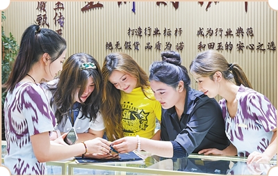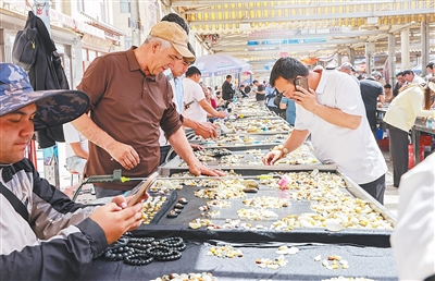時至今日,玉龍喀什河畔依然延續(xù)著“玉通中西”盛況。“現(xiàn)在的和田玉交易市場上,經(jīng)常會遇見國際買家。我們接待過不少來自巴基斯坦、吉爾吉斯斯坦的客人。盡管文化背景不同,但從他們的神情中,能看出來他們對玉石的了解與喜愛?!庇癯鰱|山珠寶有限公司總經(jīng)理陳煥輝告訴記者。