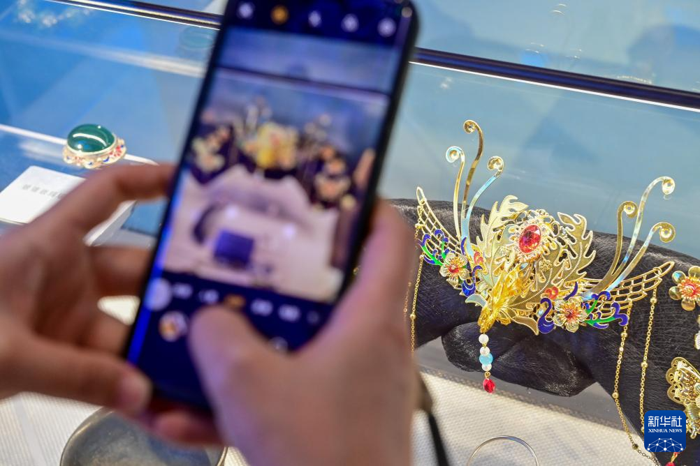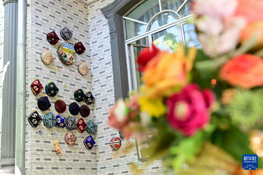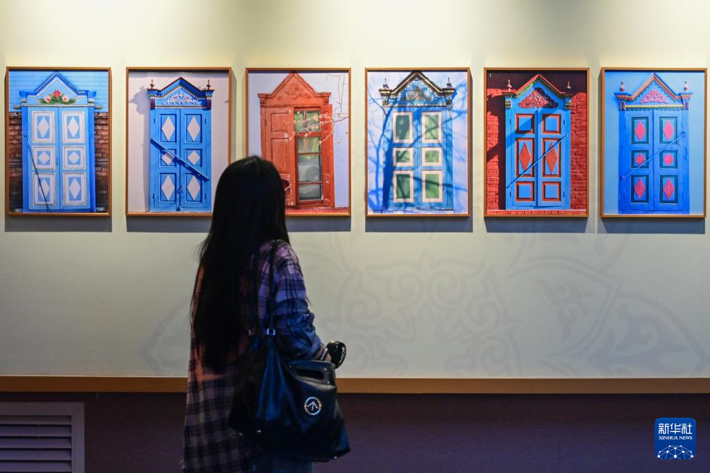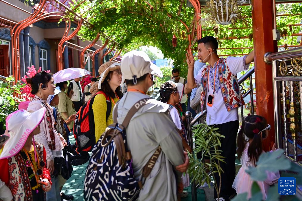 游客在新疆伊犁哈薩克自治州伊寧市伊犁老城喀贊其文化旅游區(qū)石榴花展覽館參觀(7月23日攝)。新華社記者 丁磊 攝