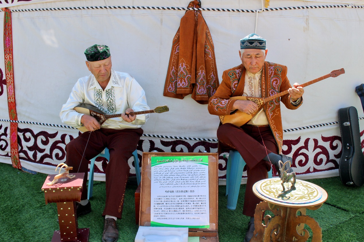 彩虹布拉克的氈房外有非遺沃爾鐵克的技藝表演,采訪團(tuán)被“會(huì)跳舞的小山羊”所吸引。非遺沃爾鐵克代表性傳承人賽里克·合德爾毛拉介紹到,“沃爾鐵克”在哈薩克語中是“領(lǐng)頭羊”的意思,哈薩克族在與自然交往的過程中度過游牧?xí)r代,“沃爾鐵克”不僅是小孩子解悶的兒時(shí)玩具,也是代代相傳的精神文明。伴隨著冬不拉的彈奏,撥弦的手牽動(dòng)連著“小山羊”的線,控制著它的跳躍姿勢,模仿巖羊在懸崖峭壁上行走奔跑。