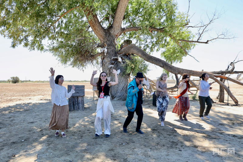 在哈巴河縣彩虹布拉克,游客與牧民共舞(央廣網(wǎng)記者 梁瑜琳 攝)
