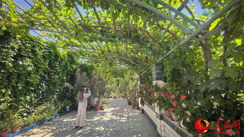康村民宿院子里的葡萄熟了,鮮花正開得艷麗。人民網(wǎng)記者 陳新輝攝