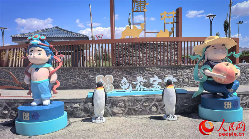 康村文化長廊旁的龜茲寶寶造型。人民網(wǎng)記者 陳新輝攝