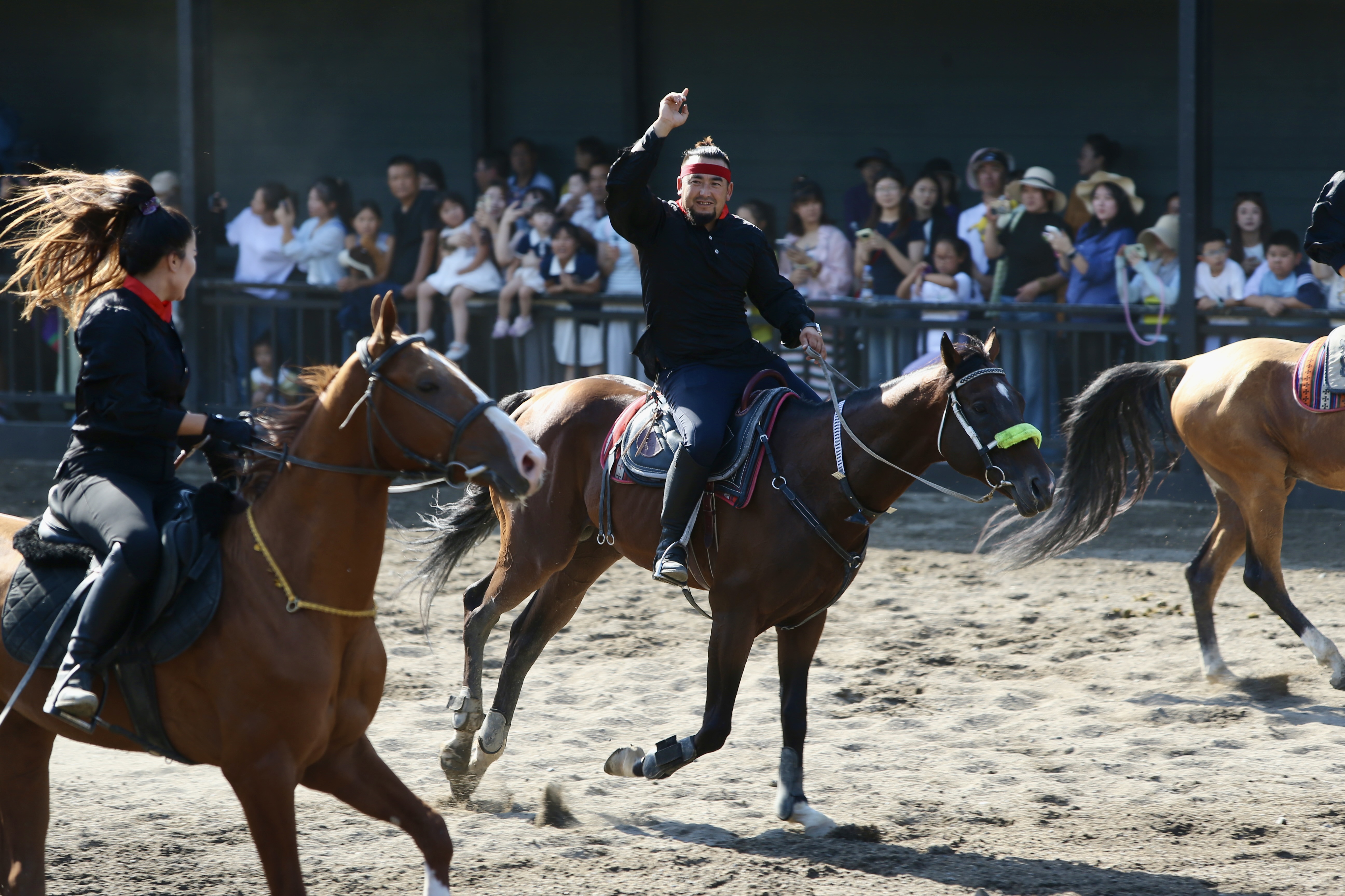 馬蹄聲碎,朝霞鎏金。今年夏天,在新疆昭蘇縣天馬文化旅游節(jié)開幕式的演出現(xiàn)場,懷抱女兒的馴馬師馭馬騰空而起,衣角生風(fēng),仿佛與汗血馬融為一體。觀眾席間驚呼聲與掌聲如潮水般涌起。