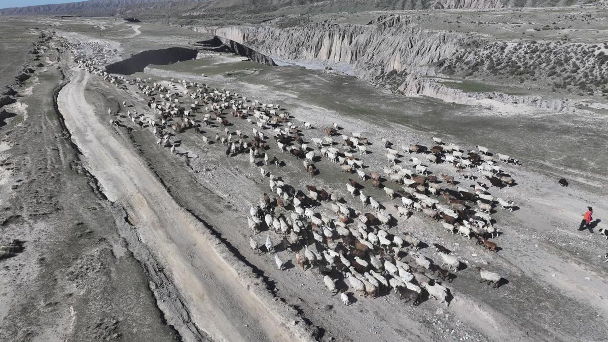 秋季牧草漸黃,新疆兵團第一師阿拉爾市四團永寧鎮(zhèn)天山牧場迎來一年一度的轉(zhuǎn)場季。成隊羊群從夏季高山牧場向山下連隊養(yǎng)殖點轉(zhuǎn)移,形成一幅獨特的草原牧歌圖景。
