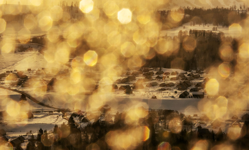 日出時(shí)分拍攝的新疆阿勒泰禾木村。新華社記者 費(fèi)茂華 攝