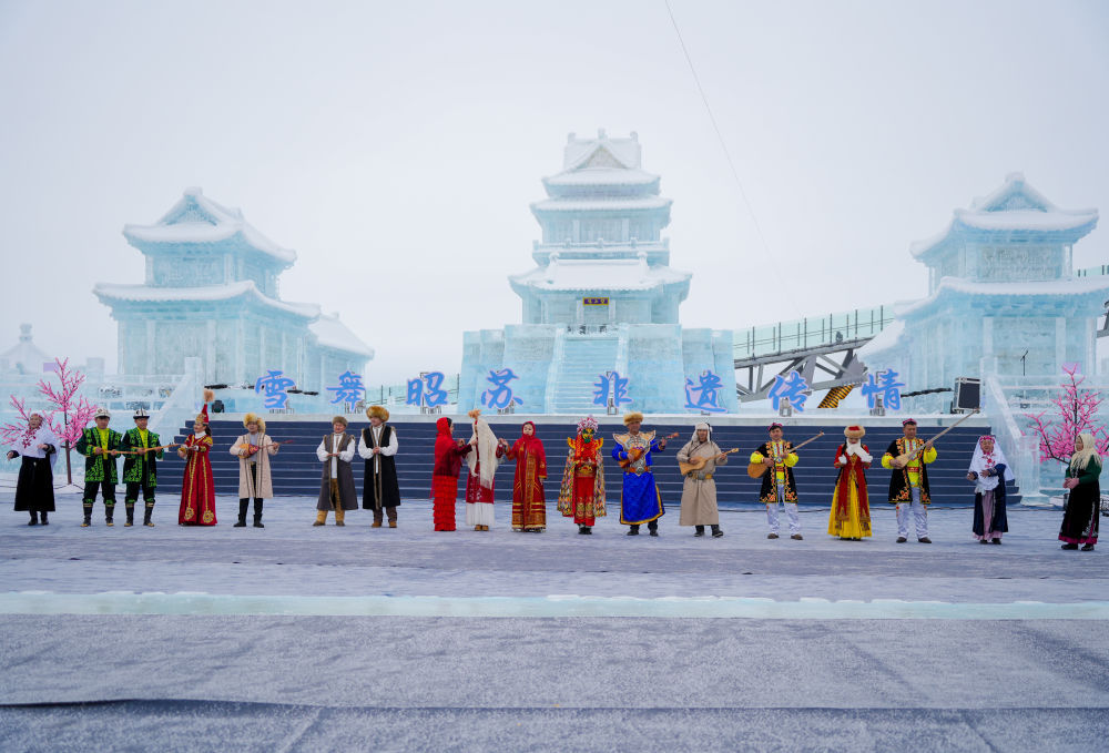 新疆昭蘇縣濕地公園,演員表演非遺節(jié)目。新華社記者 徐宏巖 攝