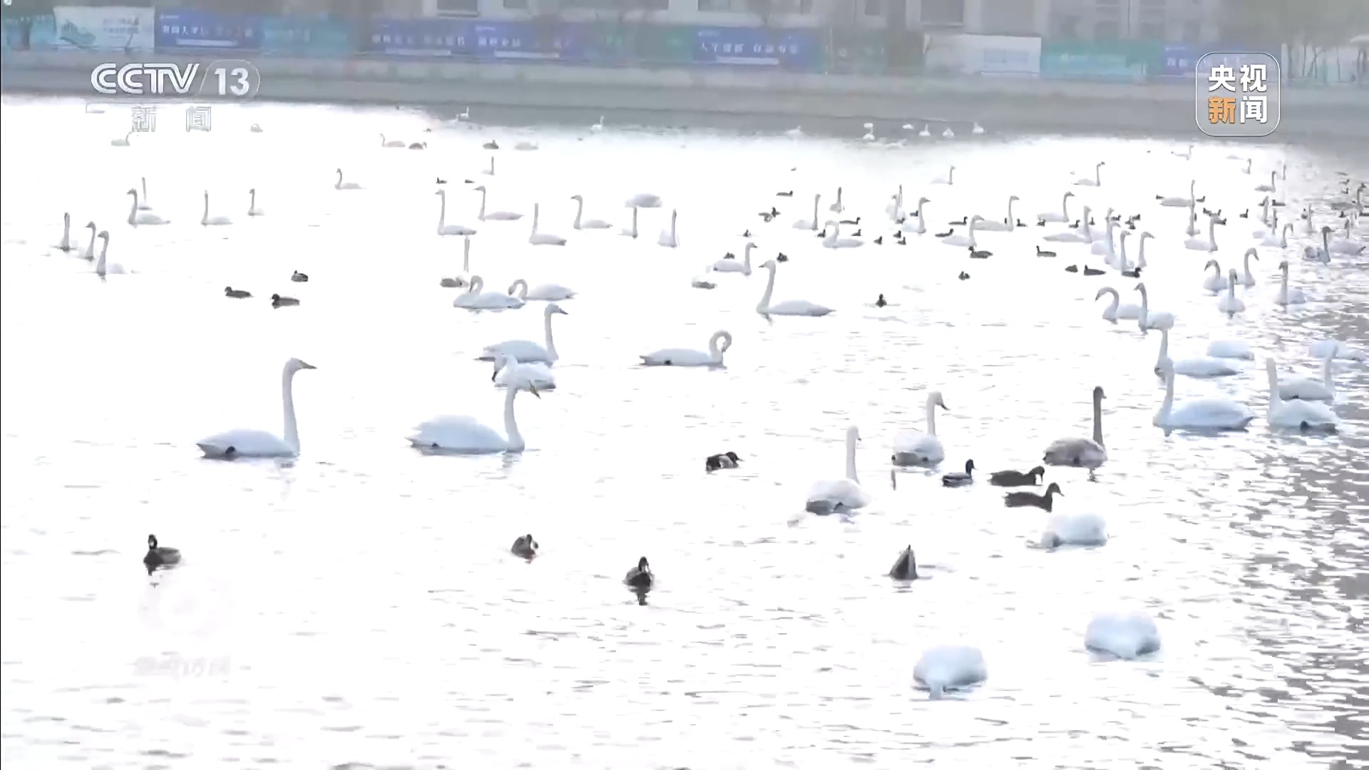 穿越天山勝利隧道,記者很快抵達(dá)庫爾勒,迎接記者的是400多只天鵝。