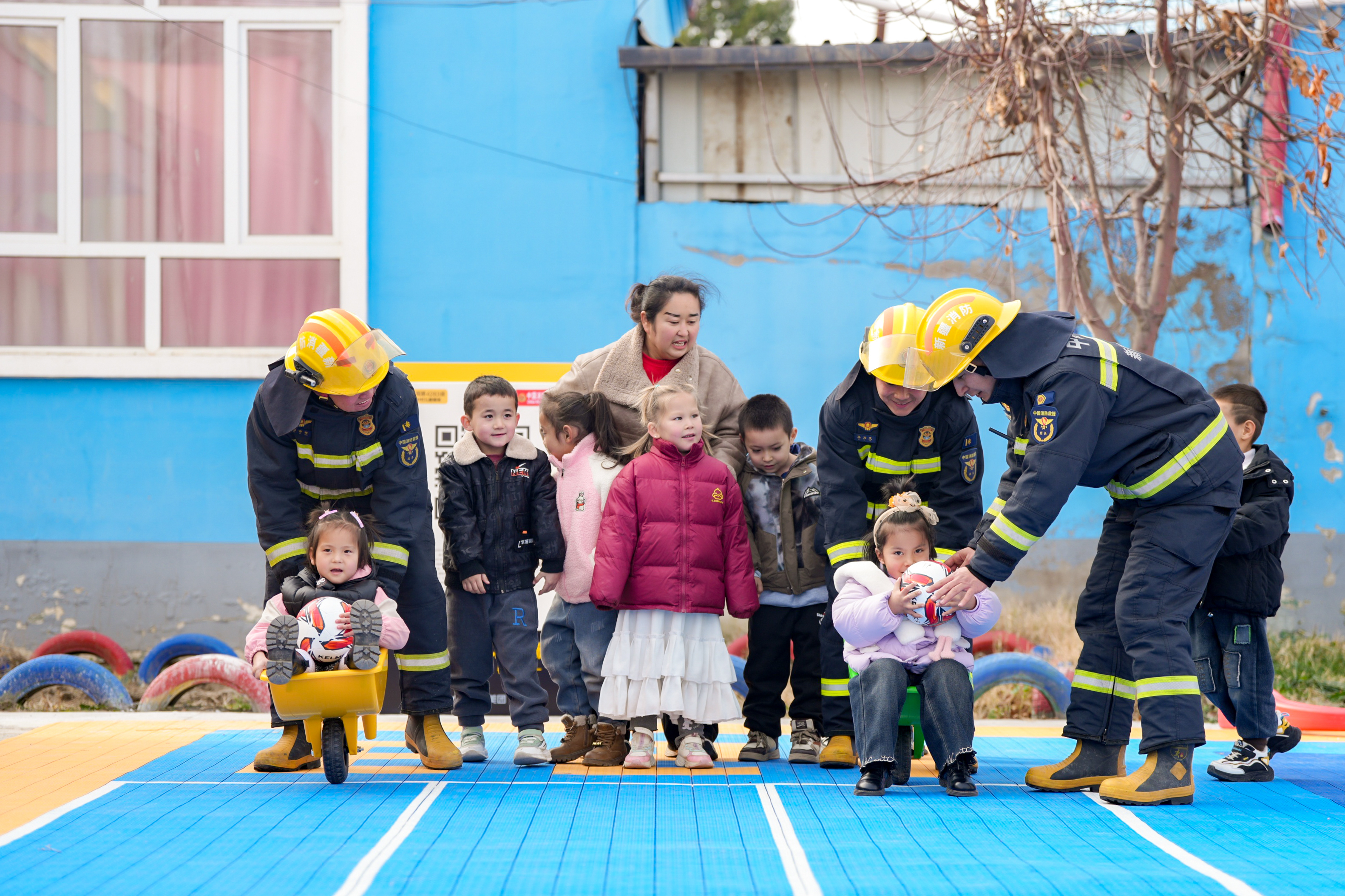 11月13日,新疆維吾爾自治區(qū)伊犁哈薩克自治州伊寧縣巴依托海鎮(zhèn)中心幼兒園上薩克于孜村分園迎來了一批特別的“藍朋友”——新疆伊犁州消防救援支隊的指戰(zhàn)員。指戰(zhàn)員們在幼兒園剛剛鋪設(shè)的新操場上,為孩子們帶來了一堂生動有趣的消防安全啟蒙課。