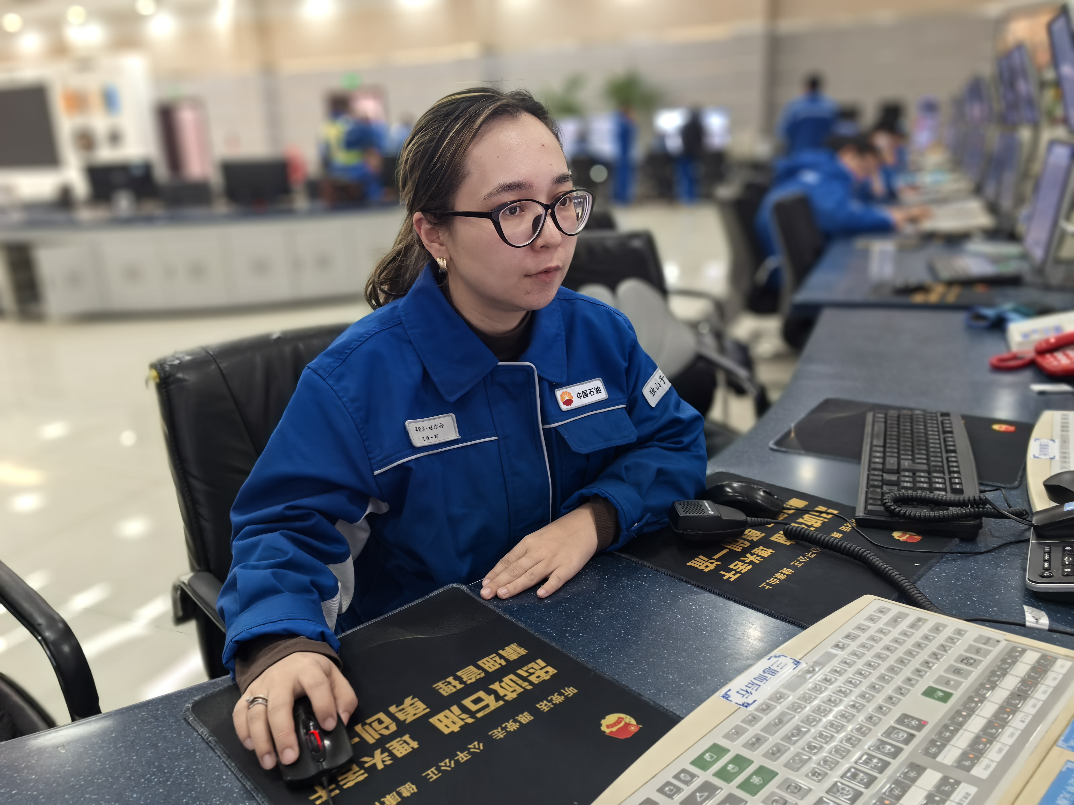 獨山子石化乙烯一部員工再努爾·吐爾孫正在查看先進控制系統(tǒng)。程賀 攝